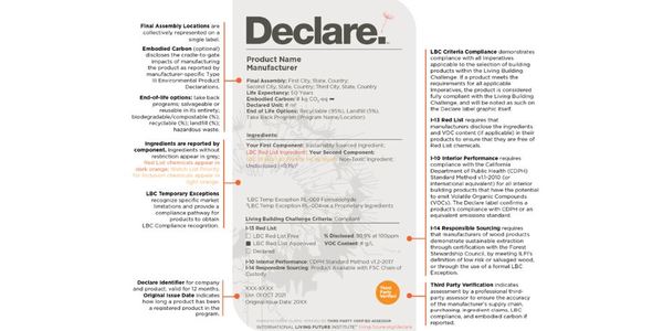 To provide our customers with the best possible information to support sustainable design, MARK products participate in Declare, a simple transparency platform from the International Living Future Institute.